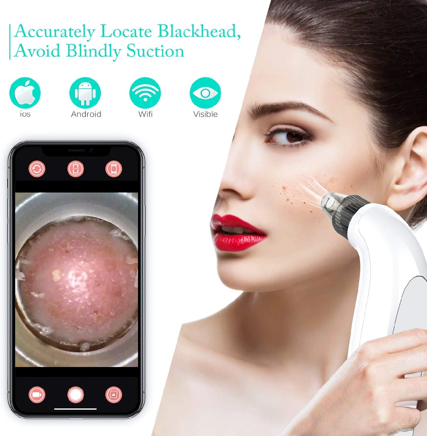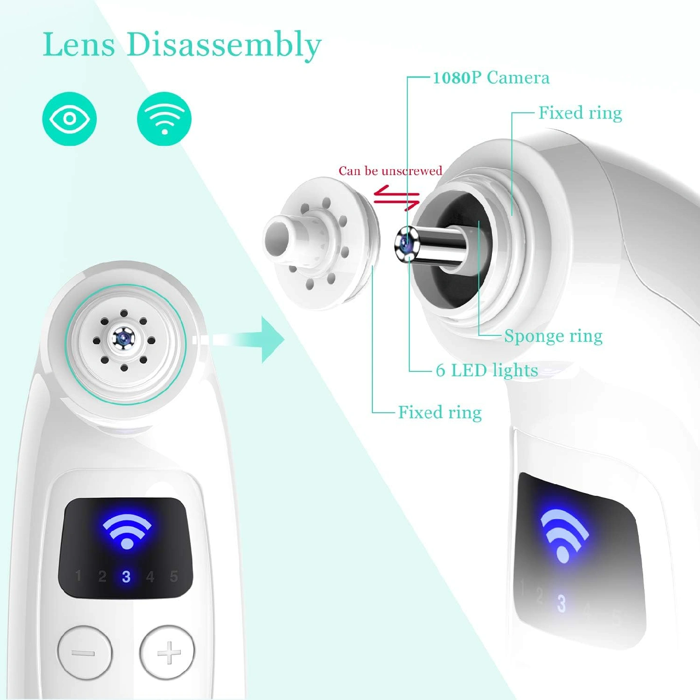 76Oiiwak 5MP Visible Blackhead Vacuum, Blackhead Remover with Camera, Electric WiFi Pore Extractor with 65 kPa Suctioner, 5 Levels Suction 3 Probes (Work for iOS/Android Phone)
