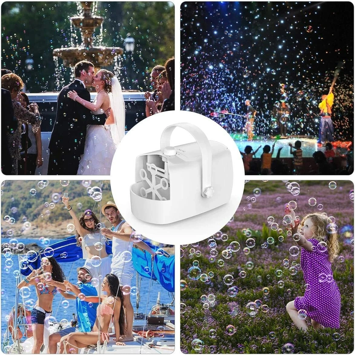76iTeknic Bubble Machine, Automatic Bubble Blower, Portable Auto Bubble Maker with High Output for Outdoor/Indoor Use,Powered by Plug-in or Batteries , Bubble Toys and Gifts for Kids Girls Boys (White)