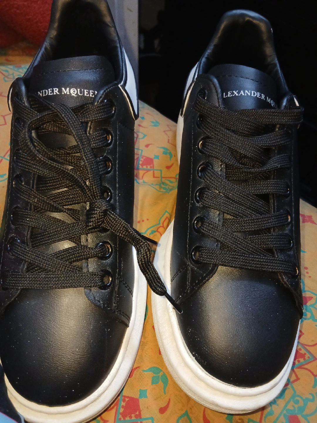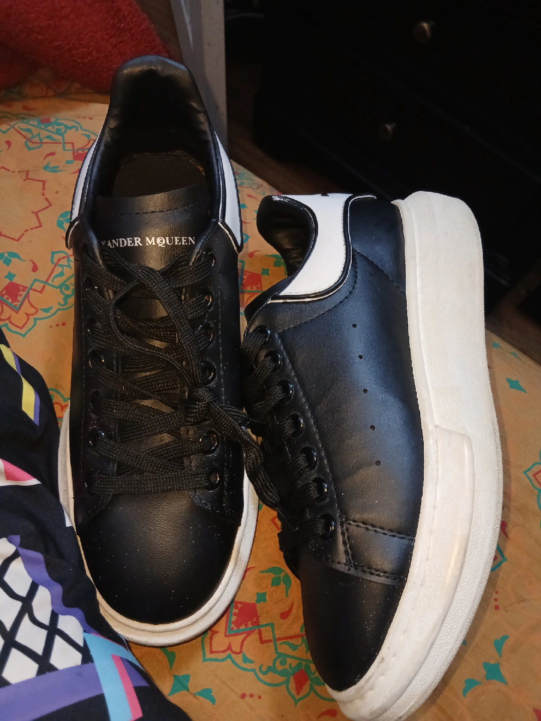 Selling a pair of Alexander McQueen platform sneakers in black leather! They’re in great shape and ready for a new home. The size is 42 (EU), which is approximately a size 9 in US/Canada. Stylish and comfortable!