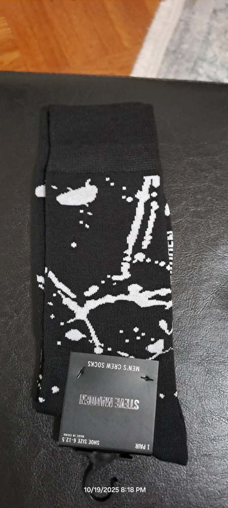 65Here are some Steve Madden men's crew socks! They are black with a white design and fit shoe sizes 6-12.5...with tags..thanks everyone..sold separately