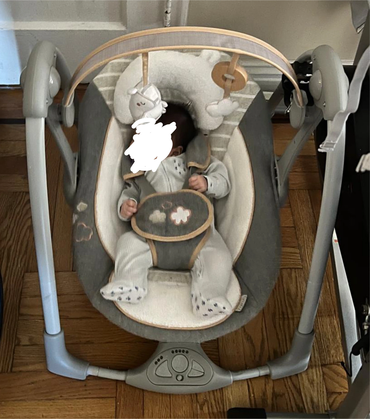 10Baby swing in good condition. It's gray and white with cute cloud details. Perfect for soothing your little one
