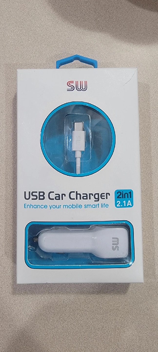 I'm selling a brand new SW USB Car Charger. It's a 2in1 charger with 2.1A output, designed to enhance your mobile smart life. Still in its original packaging!