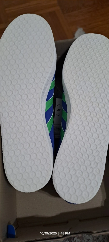 65These are a brand new pair of Adidas Gazelle sneakers! They are a vibrant blue with green stripes and accents. The size is US 10. Comes with the original box.NEW WITH TAGS...THANKS EVERYONE
