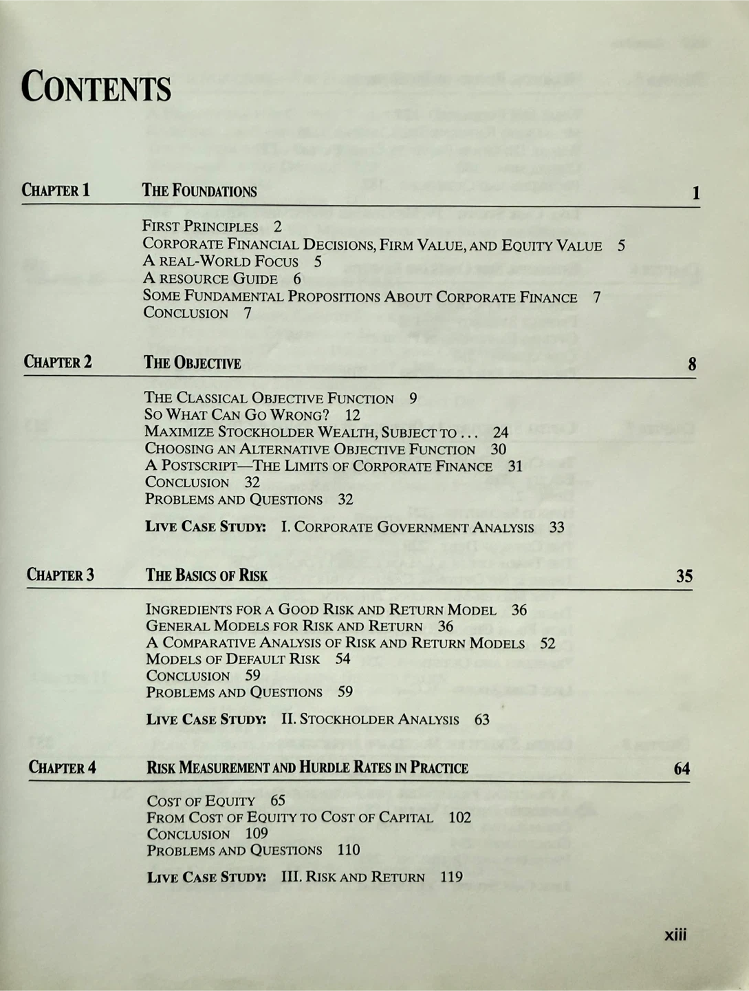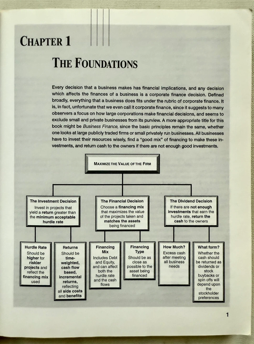 130APPLIED CORPORATE FINANCE: A USER’S MANUAL BY ASWATH DAMODARAN Convert Theory into Solutions: A Corporate Finance Reality Check This hands-on guide to corporate finance focuses on converting the theory and models in corporate finance into tools that can be used to analyze, understand and help any business. Applied Corporate Finance provides a user's perspective to corporate finance, by focusing on the three major questions that every business has to answer: - Where do we invest our resources? (The Investment Decision) - How should we fund these investments? (The Financing Decision) Firms generally can use debt, equity or some combination of the two. - How much cash can and should we return to the owners? (The Dividend Decision) The third part of the book establishes a process that can be used to decide how much cash should be taken out of the business. The final chapter in the book ties in the value of the firm to these three decisions. Please check out my other listings!!