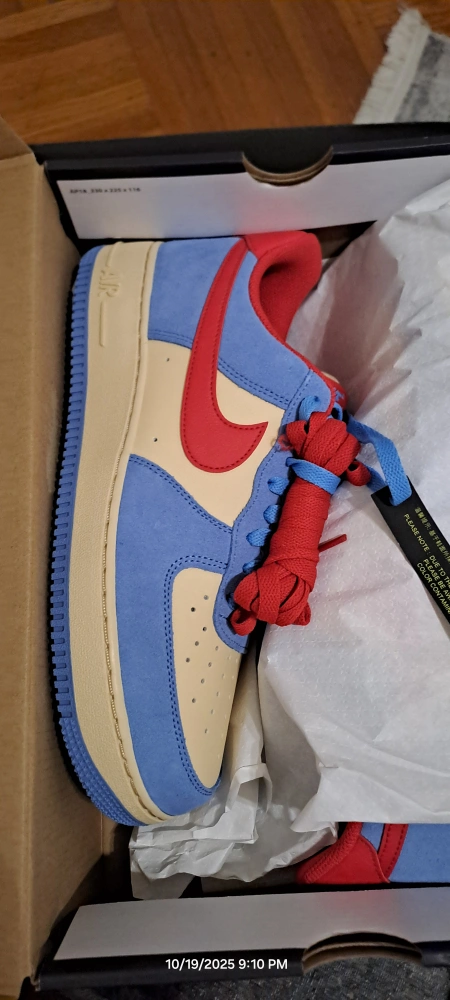 65Selling a pair of Nike Air Force 1 '07 LV8 in the University Blue/University Red colorway. They are a US size 9 & 10 Comes with the box!NEW WITH TAGS..THANKS EVERYONE