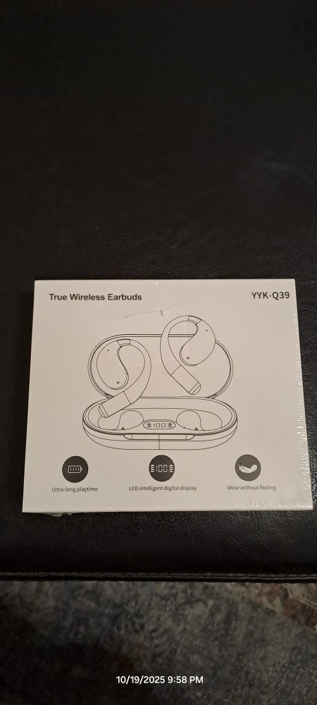 65Selling a brand new pair of YYK-Q39 True Wireless Earbuds! They come with the original box and include earbuds, a charging case, specifications, and a charging cable. Enjoy ultra-long playtime and an LED intelligent digital display, plus they're designed to wear without feeling them. The speaker size is 14.2mm and the microphone is 42±3dB @1K Hz. Input is 5V 0.5A, and the charging time is 2 hours (USB-C). Transmission distance is >10M...THANKS EVERYONE