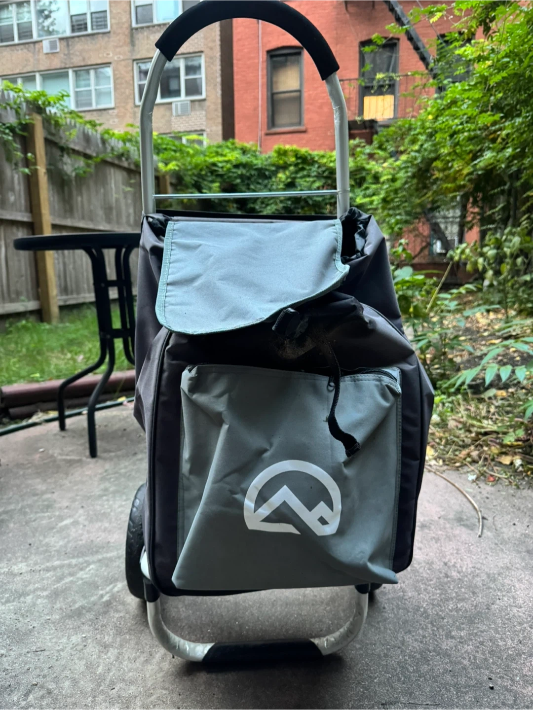 I'm selling a Mountaintop rolling shopping cart in gray. It's in great condition and ready to help with your shopping trips! This cart is perfect for carrying groceries or other items with ease. The wheels roll smoothly, and the bag is spacious and durable