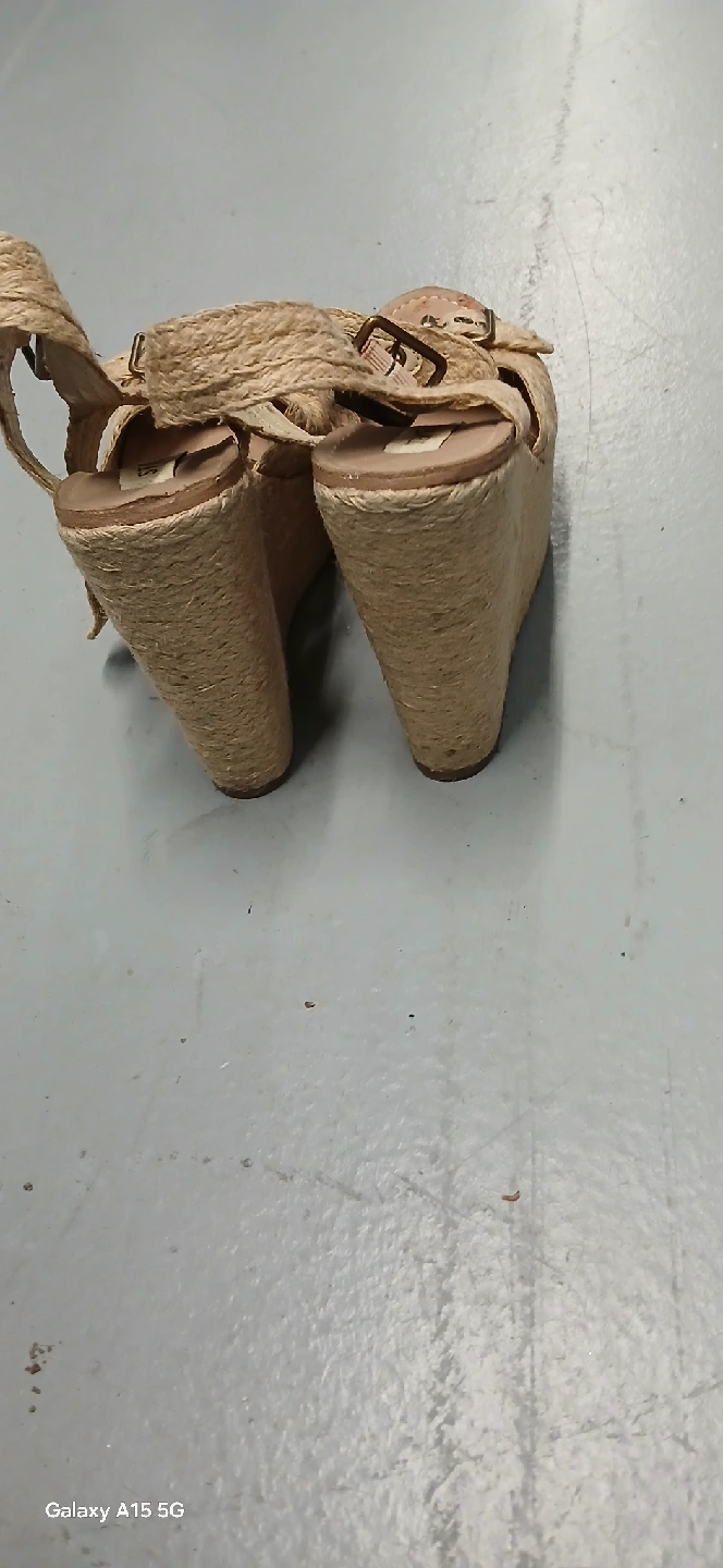 These are a pair of Steve Madden wedge sandals in a size 9. They feature a fun leopard print on the straps and a woven wedge heel. The upper is made of leather and the outsole is rubber.