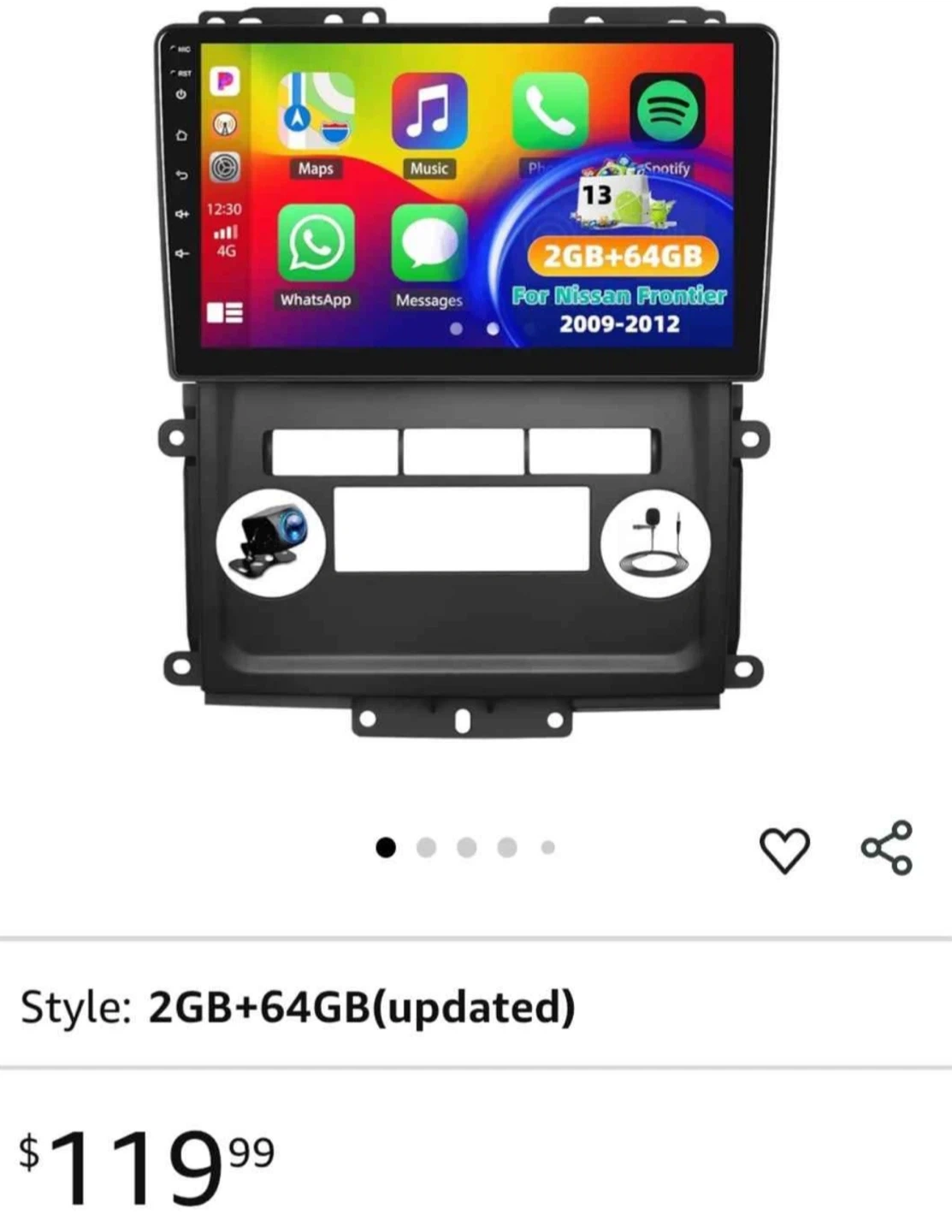 121Car stereo for Nissan Frontier Xterra 2009-2012. Features include: - FM/RDS Radio - Bluetooth Hands-free - Built-in Equalizer System - CarPlay - Android Auto - Mirror Link - GPS Navigation - Support WiFi or Hotspot
