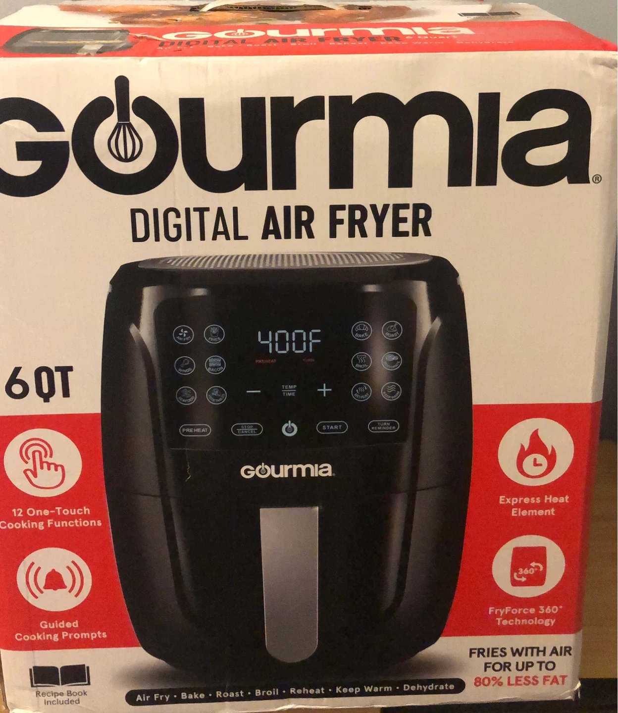 Selling a Gourmia digital air fryer. It's a 6QT size and comes with one-touch cooking functions. It also has FryForce 360° Technology, which fries with air for up to 80% less fat brand new