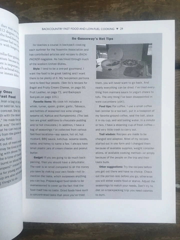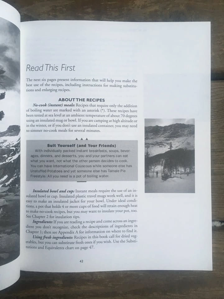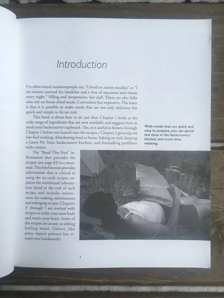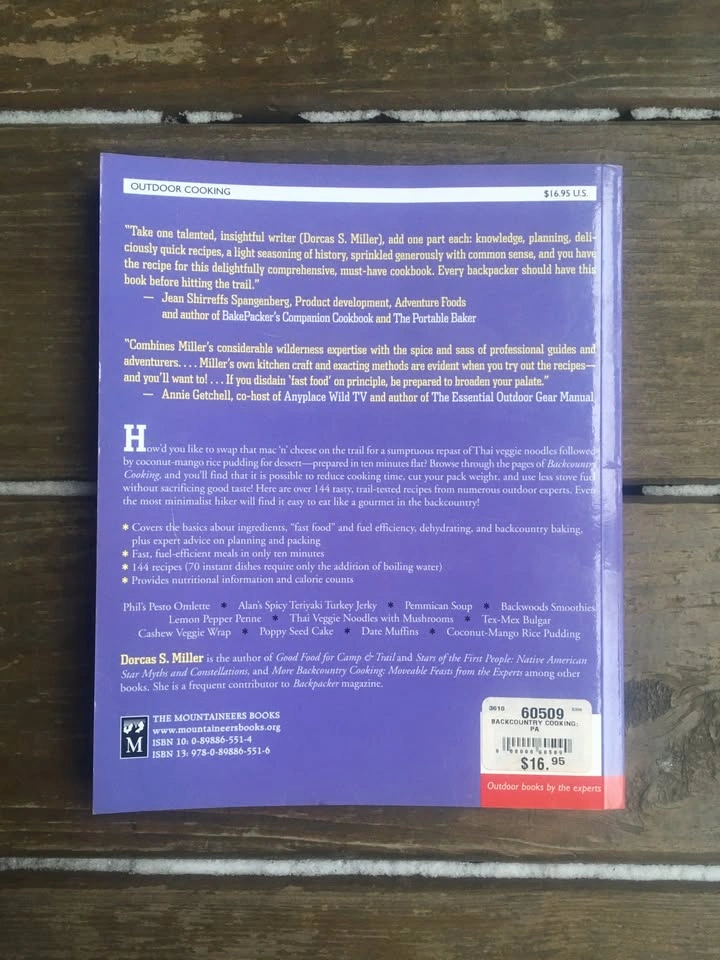 Softcover book by Dorcas Miller is in excellent condition with 176 clean pages. Book is published by Backpacker: The Outdoors At Your Doorstep magazine. Contains 144 recipes, 70 of which require only the addition of boiling water. Fast, fuel-efficient meals in 10 minutes. Provides nutritional information and calorie counts. Book is organized into 7 chapters: 1) Know Your Ingredients 2) Kitchencraft 3) Breakfast 4) Lunch And Snacks 5) Soups, Smoothies And Side Dishes 6) Dinner 7) Desserts Measures approx. 7 x 9 inches. From a smoke and pet free home. Check out in person before purchasing. Thanks for looking!
