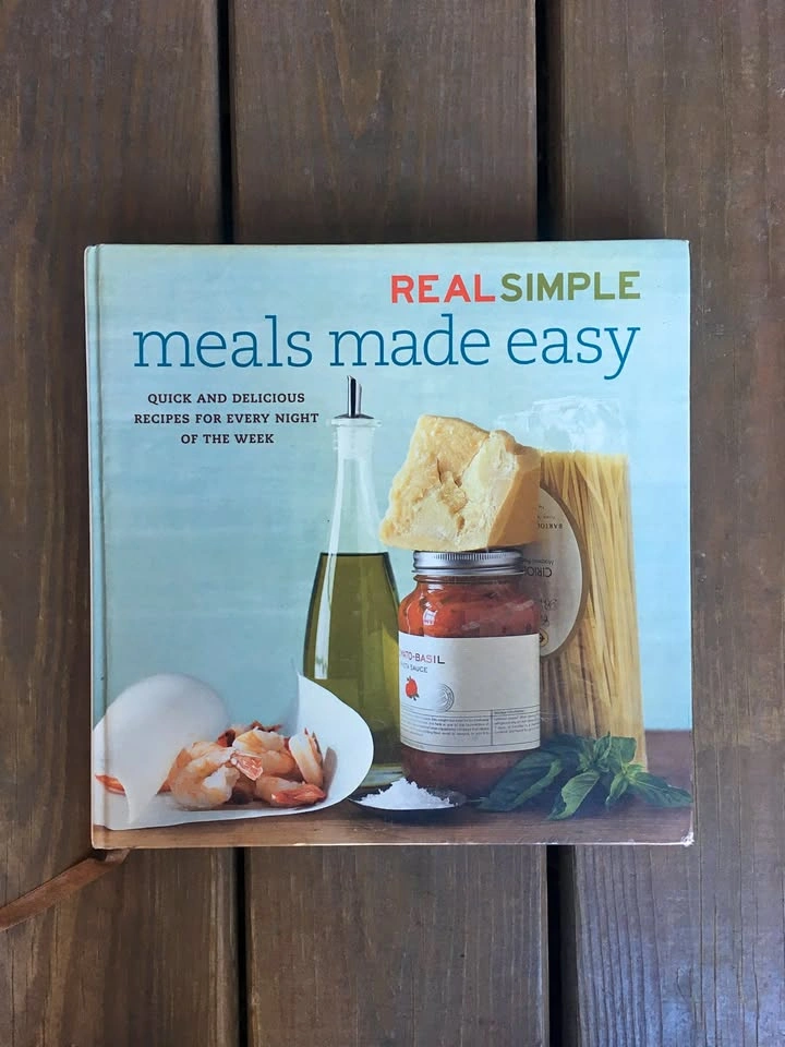 Real Simple Meals Made Easy Hardcover Cookbook - 194 Pages Quick and delicious recipes for every night of the week. 194 page hardcover book measures 10 x 10 and is in excellent condition. 7 chapters of easy recipes: 1) One-Pot Meals 2) No-Shop Meals 3) 30-Minute Meals 4) No-Cook Meals 5) Freezer Meals 6) Shortcut Meals 7) Reliable Sides More than 75 surefire answers to that nightly question: What’s for dinner? Ribbon placeholder for easily finding that meal you were planning From a smoke and pet free home. Check out in person before purchasing. Thanks for looking.