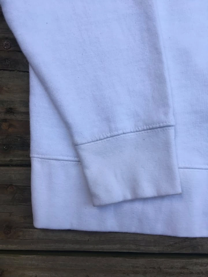 This was barely worn and is in excellent condition with no flaws. It runs large for its size. When laid flat it measures approx. 29" from top to bottom and 22" from side to side. The brand of sweatshirt is Smart Blanks and is made of 80% cotton and 20% polyester. The pictures were taken outdoors for best lighting and color representation. From a smoke and pet free home. Check out in person before purchasing. Thanks for looking!