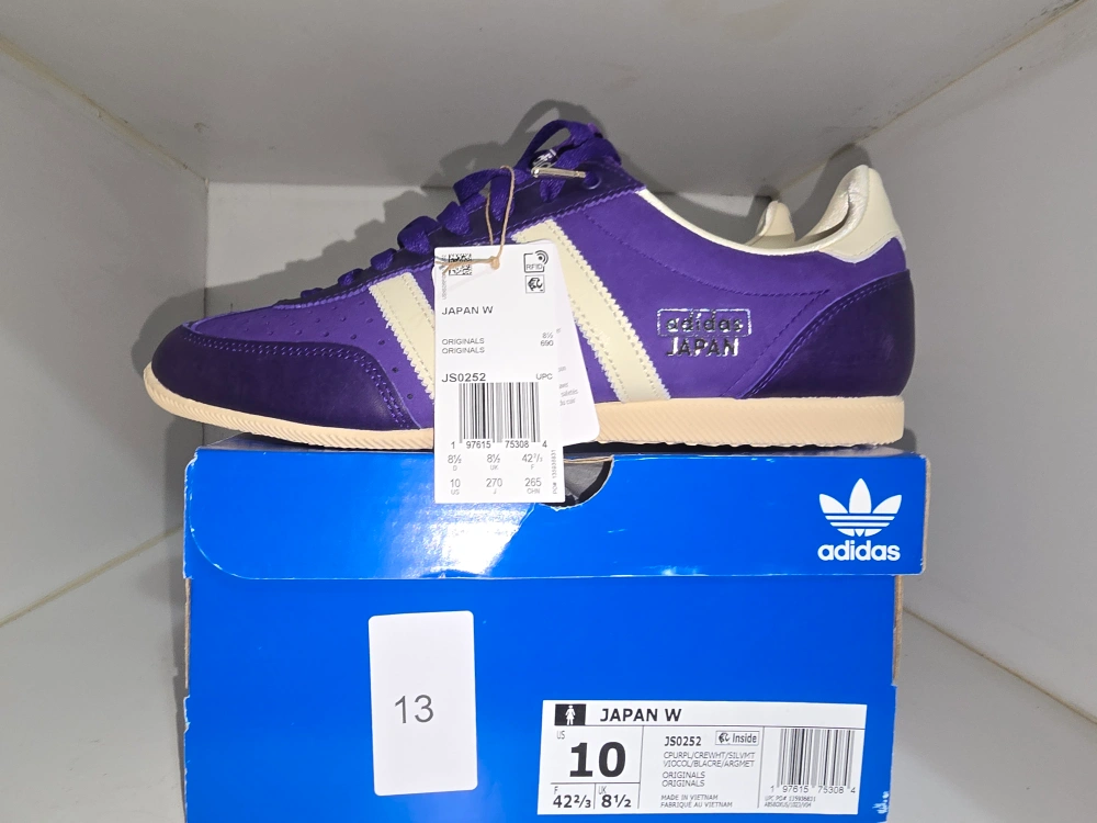 68Selling a pair of Adidas Japan W sneakers in purple and white! These are a women's size 10 (US). They come with the original box. new