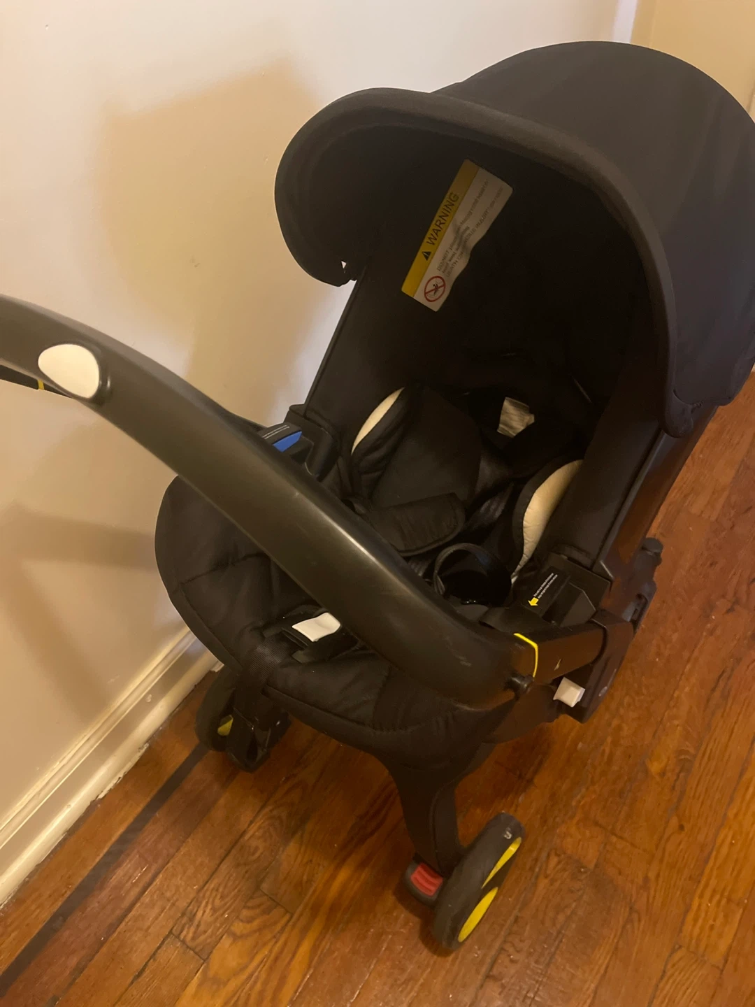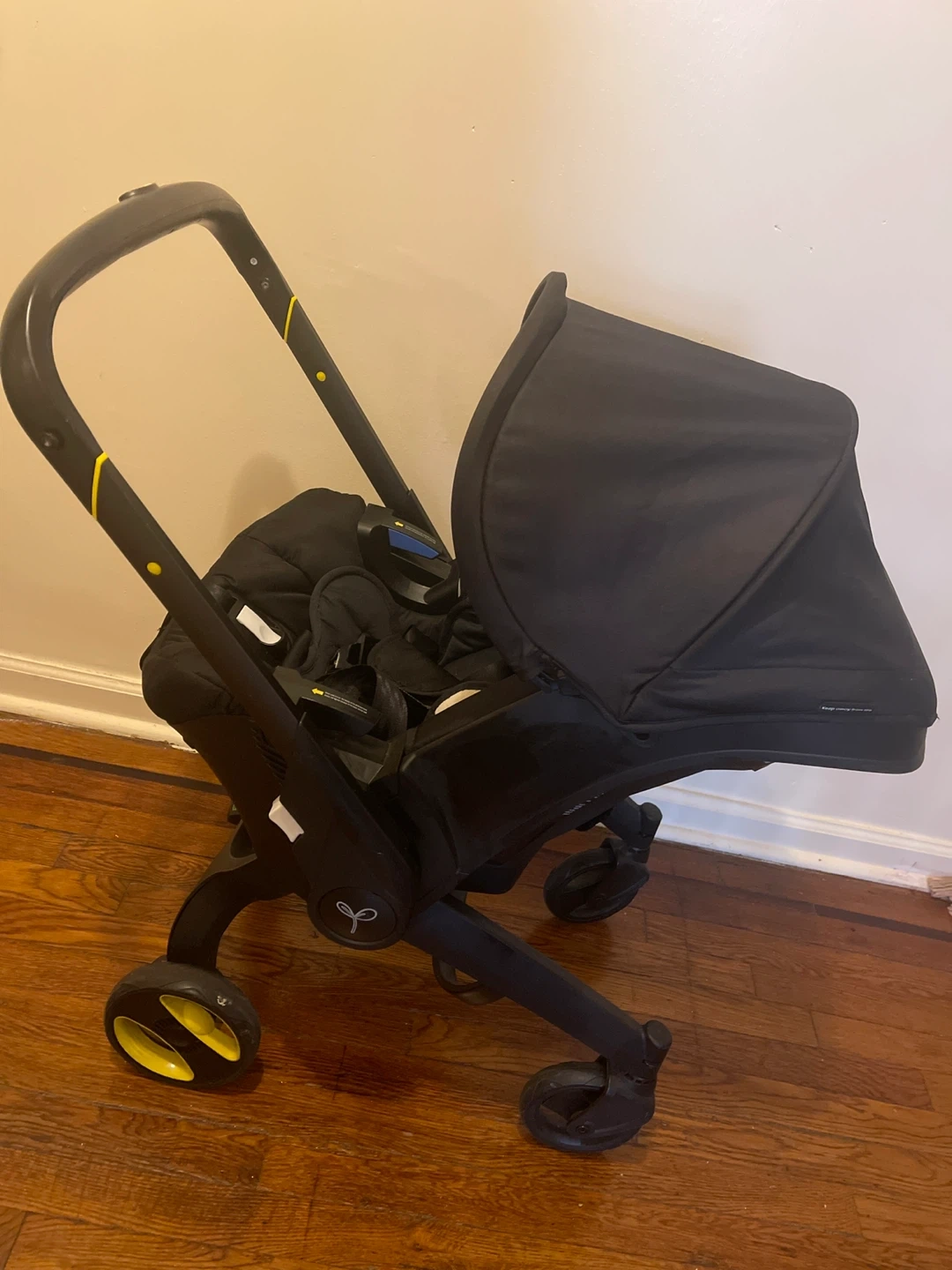 31Selling a Doona infant car seat stroller in black. It's a convenient and safe travel solution for your little one. This car seat easily converts into a stroller, making it perfect for errands or travel. It's been well-maintained and is ready for its next adventure!