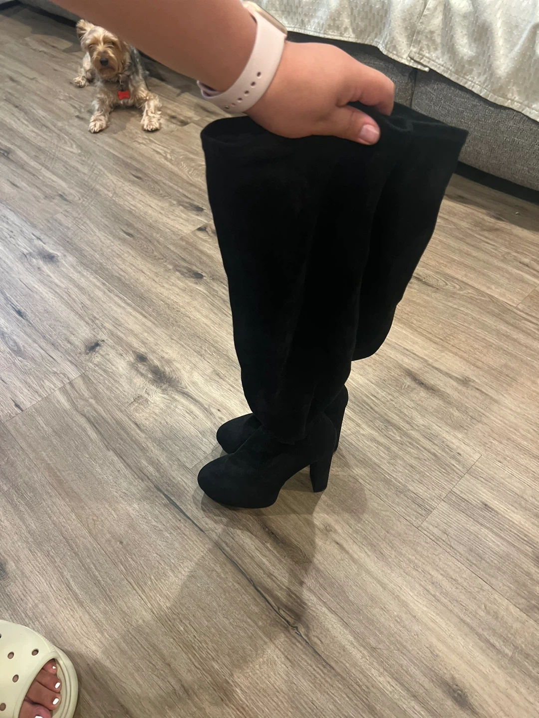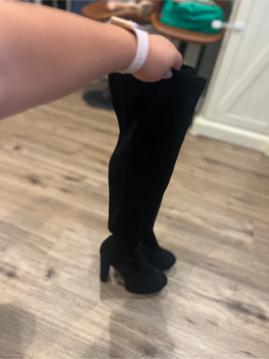 10Selling a pair of black over-the-knee heel boots! They are in good condition and ready for a new home