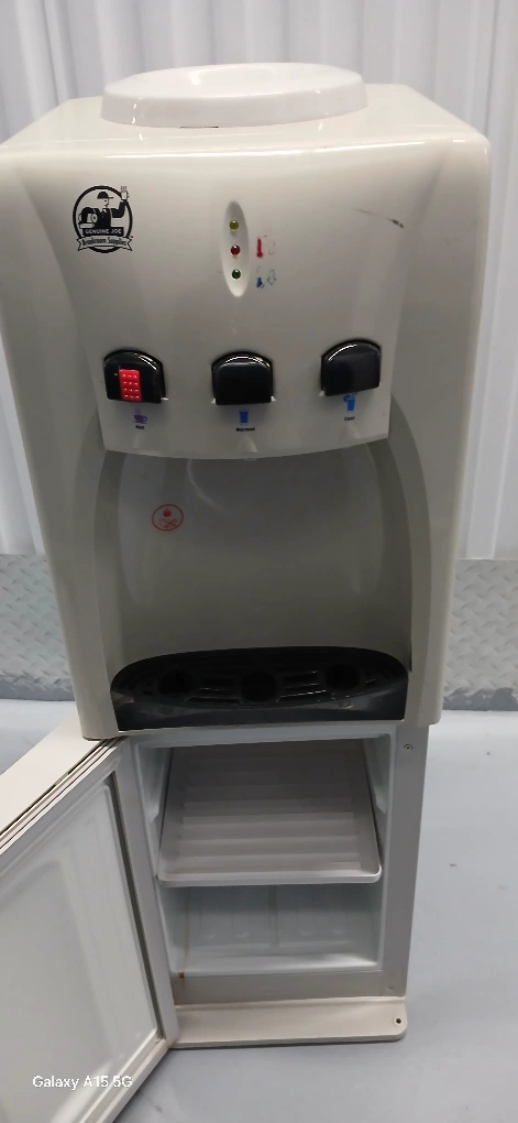 60Selling a water dispenser that also has a small refrigerator compartment at the bottom. It's in good working condition and perfect for keeping drinks cold while dispensing water. It has some minor cosmetic wear.