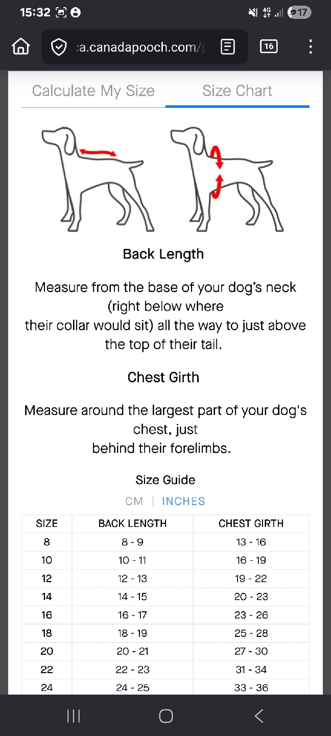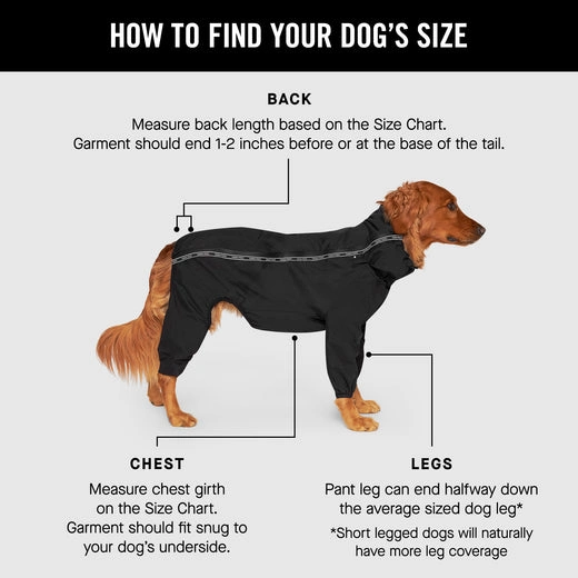 Keep your furry friend dry with this Canada Pooch rain suit! It's water-resistant and designed to provide great coverage. Check the size chart in the photos to find the perfect fit for your dog's back length and chest girth. The Slush suit I have for sale is a black, brand new, and size 22. The dog in the photo is wearing size 24.