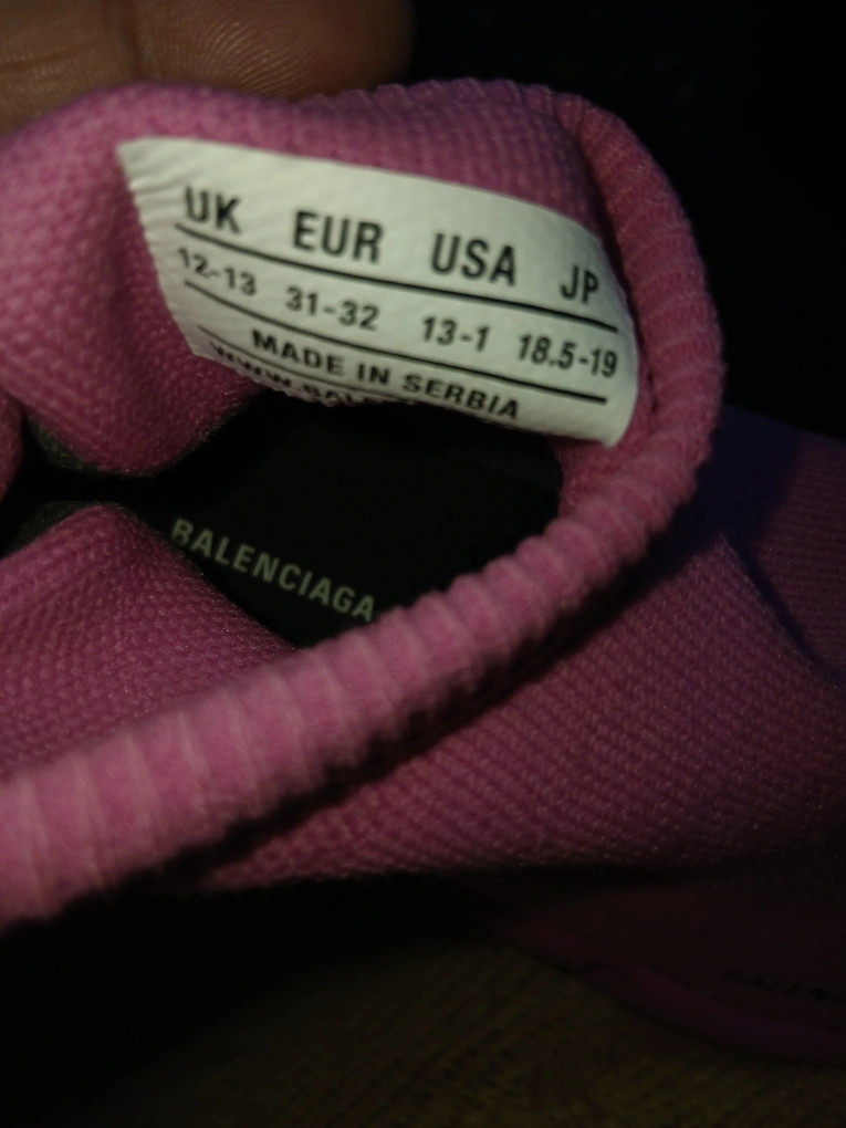 Selling a pair of Balenciaga Speed 2.0 sneakers in pink! These are a knit style and the size is US 13-1. Made in Serbia and features the Balenciaga logo on the side and sole