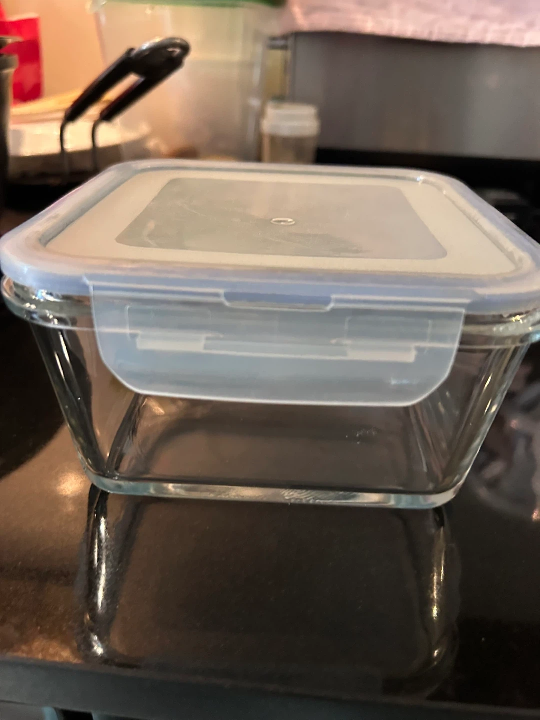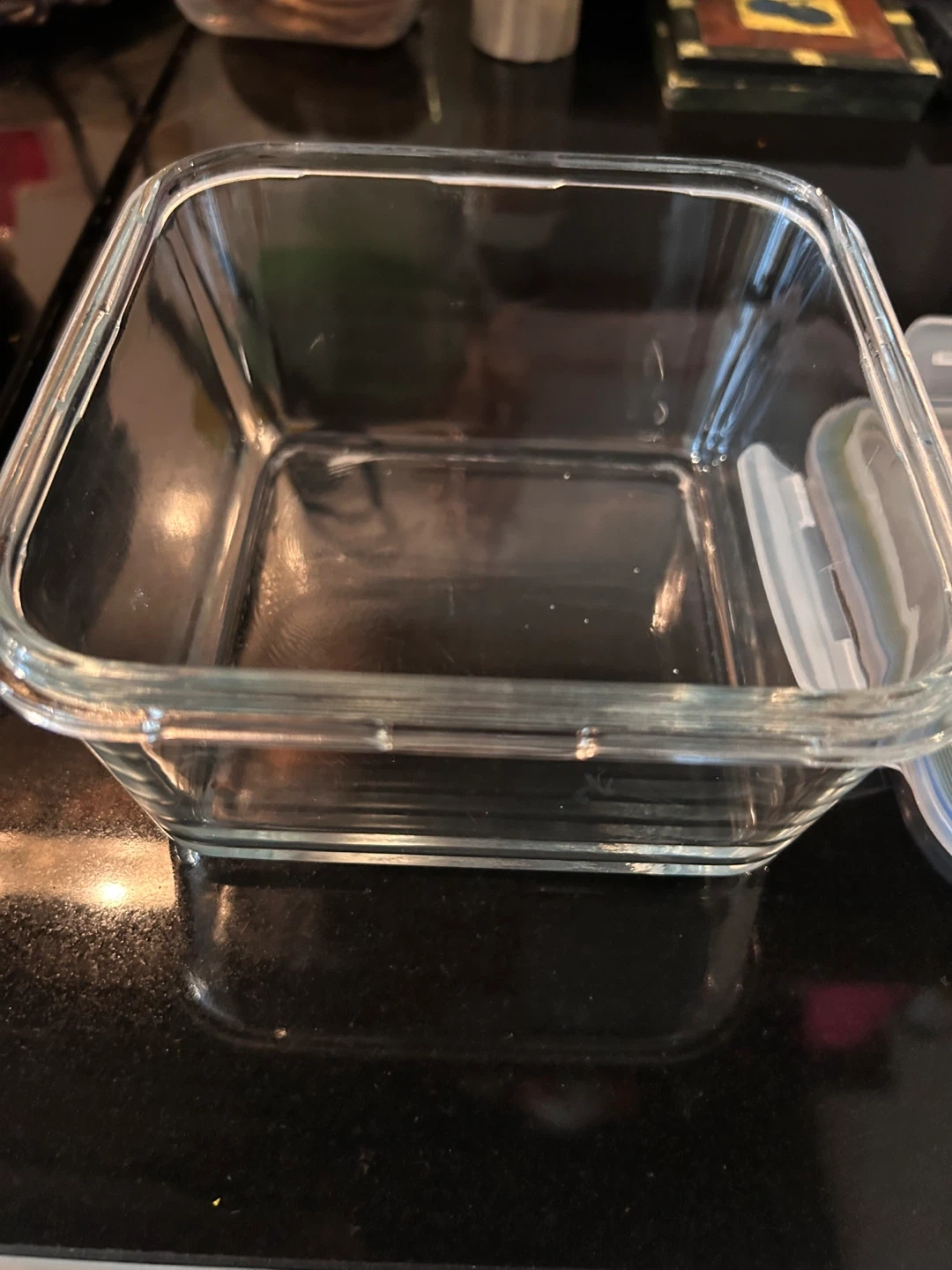 Selling a glass food storage container with a plastic lid. It's in great shape and ready for a new home! Perfect for meal prepping or storing leftovers.