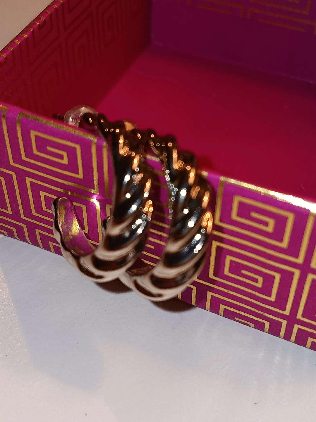 Selling a pair of twisted hoop earrings. They are in great condition and come with the box