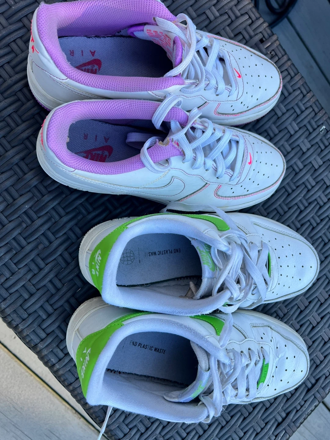 Selling a couple pairs of used Nike Air Force 1s. Both have some wear and tear, including holes in the inner lining. Please see photos for details!