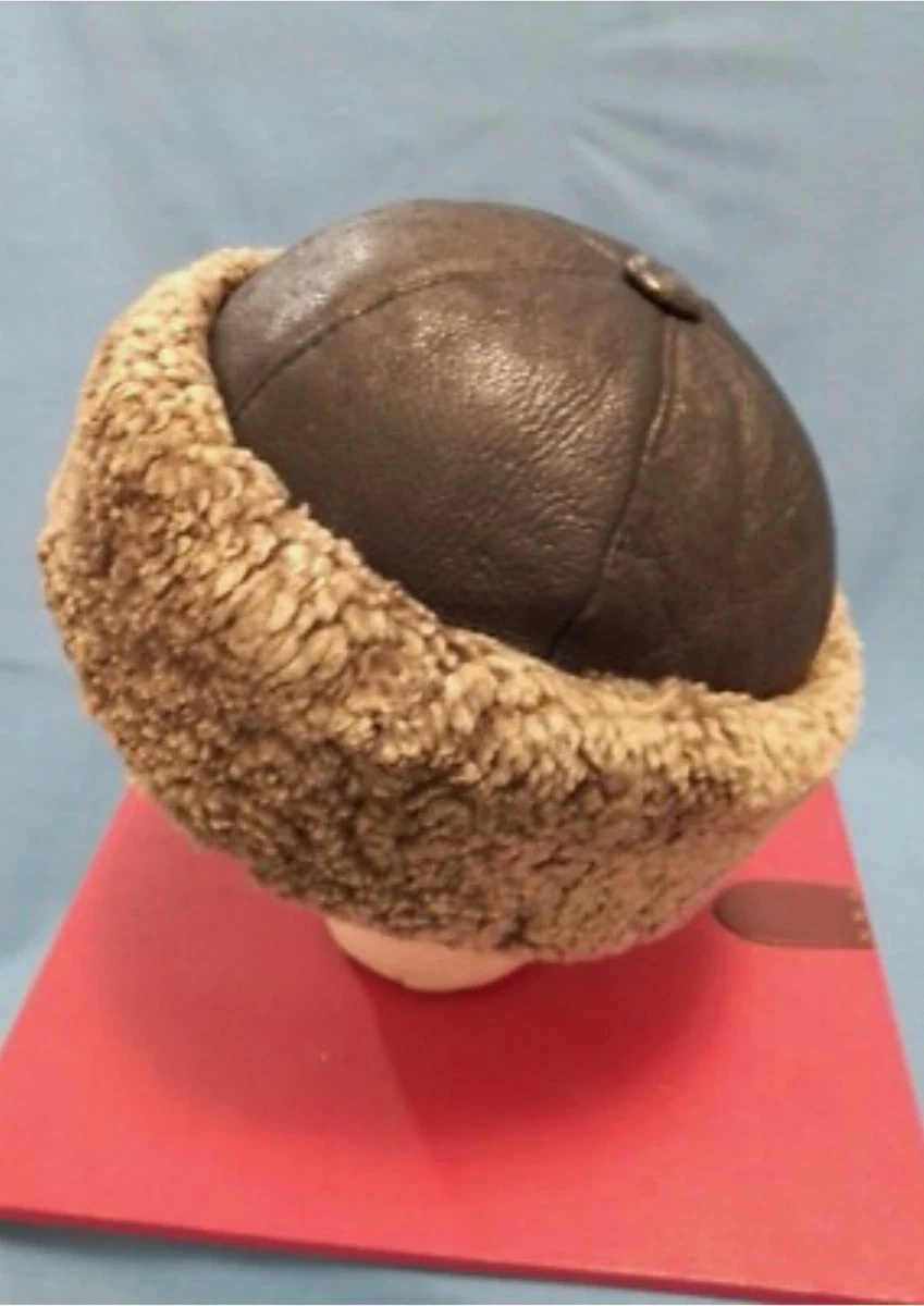 10A cozy brown leather hat with real fur Perfect for keeping warm during cold weather. The hat is in good condition