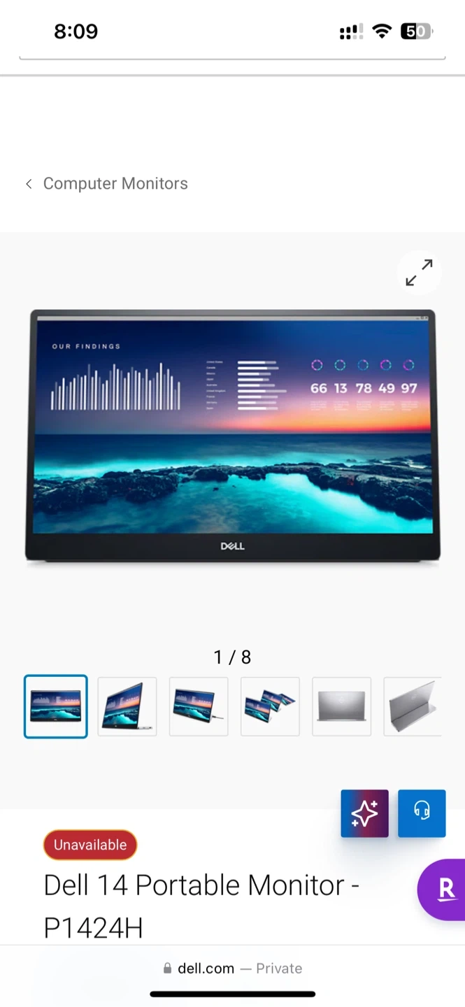 Selling a Dell 14 Portable Monitor, model P1424H. It's perfect for on-the-go productivity or as a secondary display. Lightweight and easy to carry!