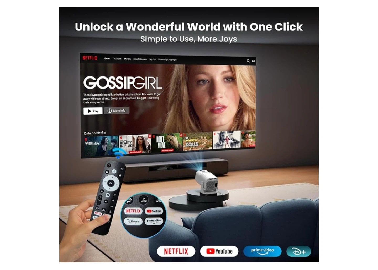 46Selling a Unique 320 ANSI 1080P 4K Projector with WhaleOS! Enjoy a giant screen with 50"-300" 1080P 4K support. It features super device compatibility, one-click access to projector, and online upgrades with Wi-Fi 6 certified. Say goodbye to dark screens and pixelated picture quality!