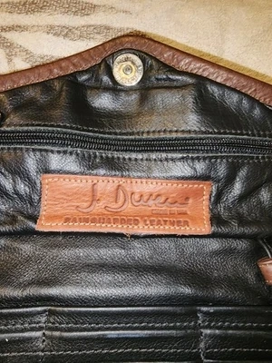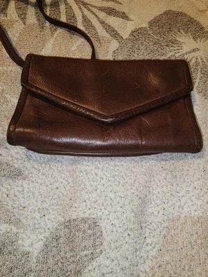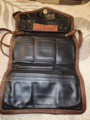 10Here's a J. Dunsce crossbody wallet in brown leather. It features a rain-guarded leather design and a convenient shoulder strap. Perfect for everyday use!