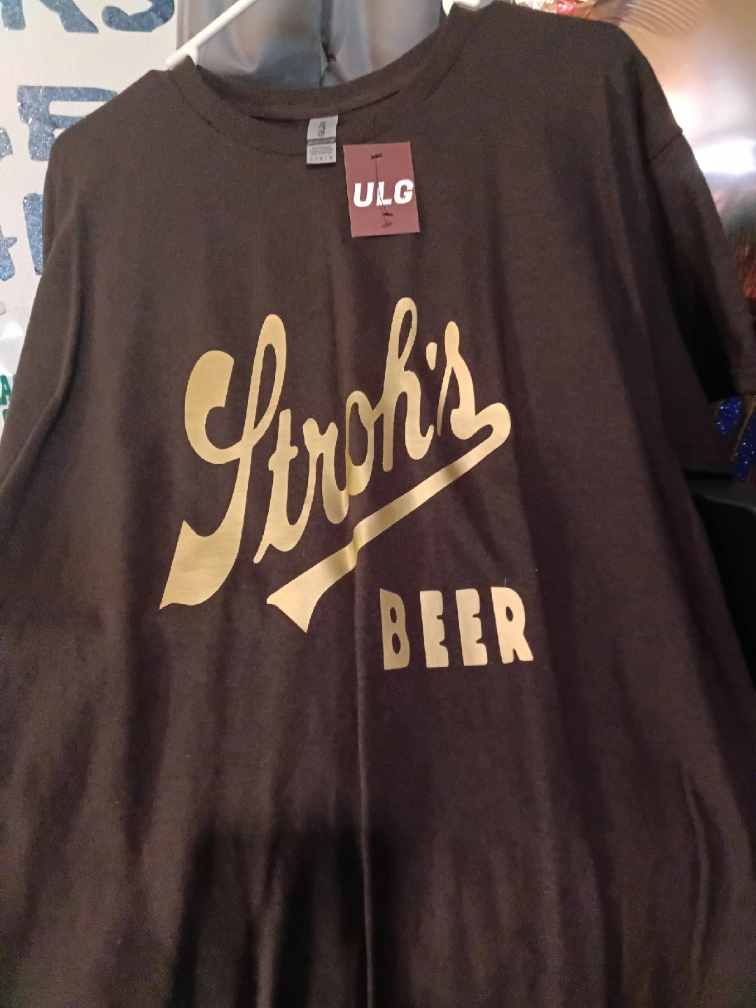 10Selling a Stroh's Beer graphic t-shirt! The shirt is brown with a gold graphic. It's in great condition and ready for a new home