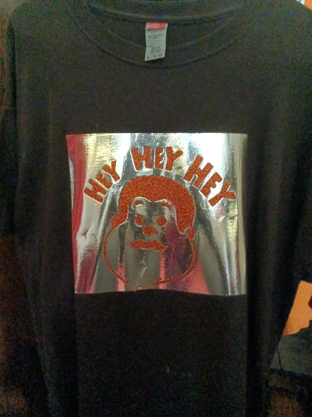 10Selling a Hanes black t-shirt in size XL. It features a fun design!