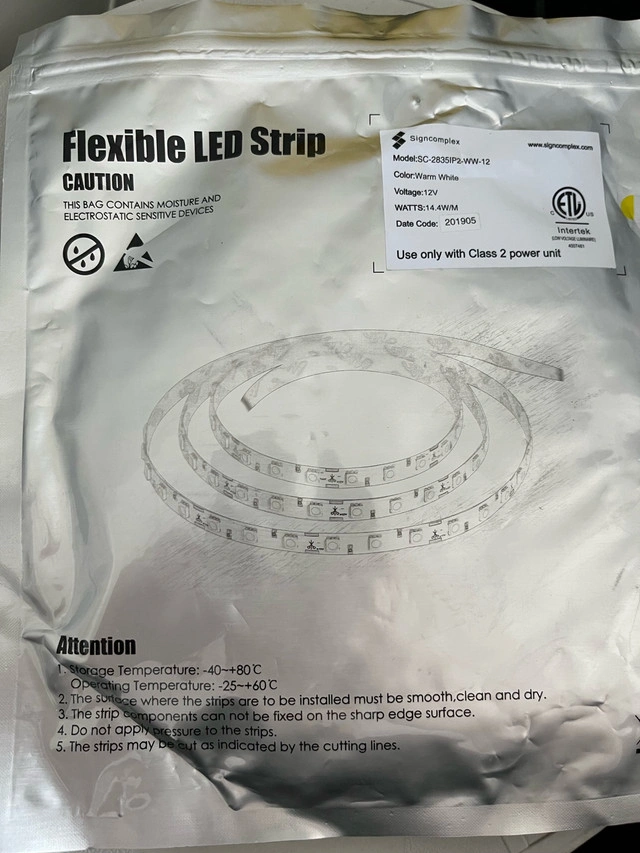 I am selling a Signcomplex Flexible LED Strip, Model SC-2835PLWW-12, rated at 12V and 14.4W/M. This used strip is in good condition and includes a power supply Model S-600-12. Perfect for various lighting projects! * **Model:** SC-2835PLWW-12 * **Voltage:** 12V * **Wattage:** 14.4W/M If the ad is up, it's still available!
