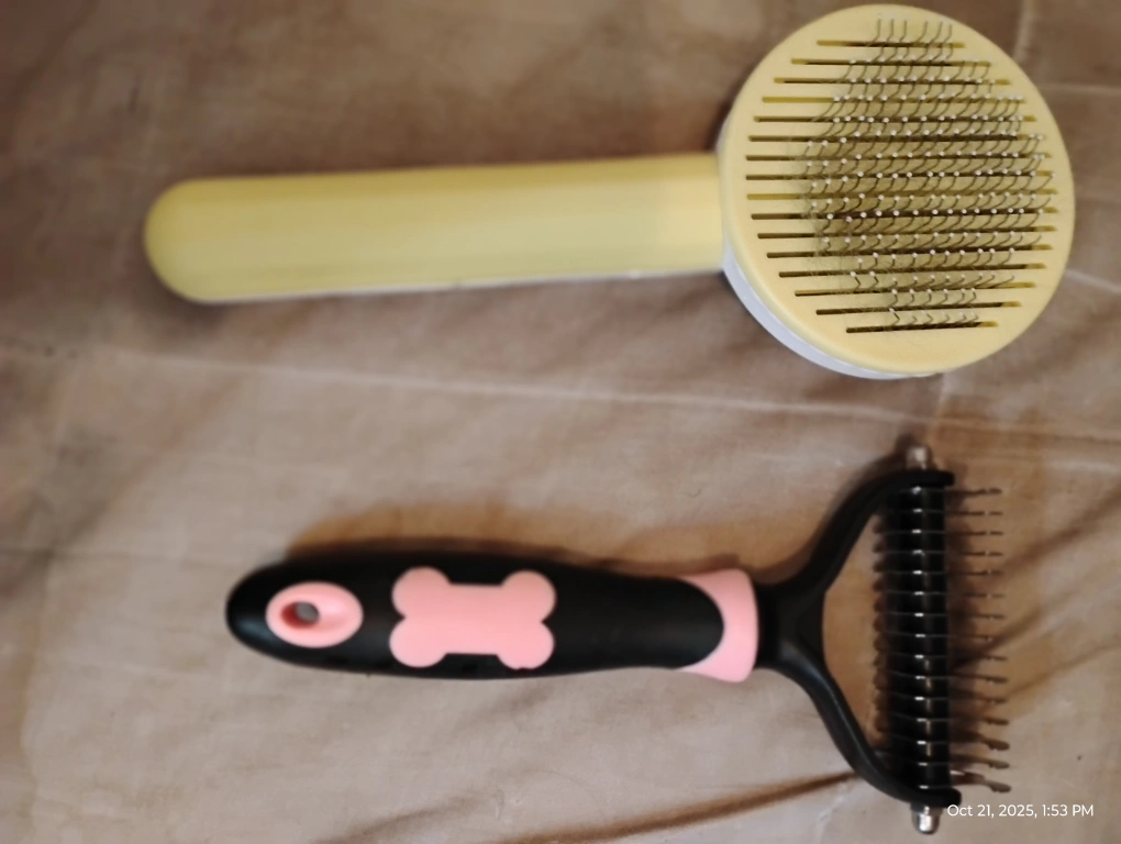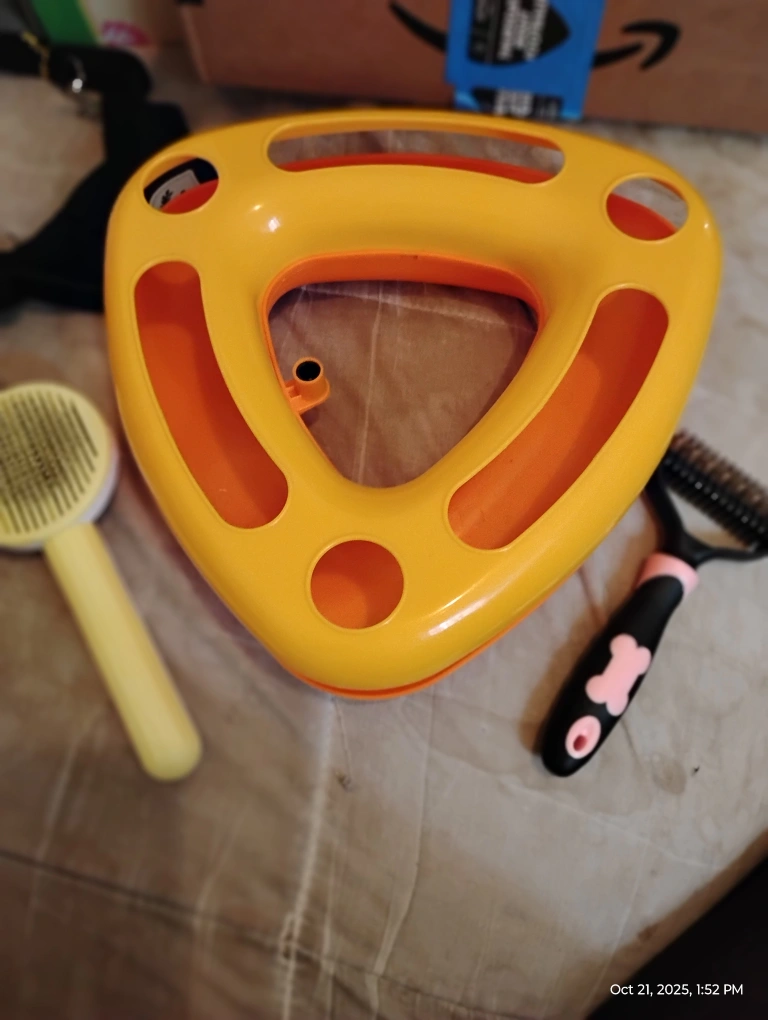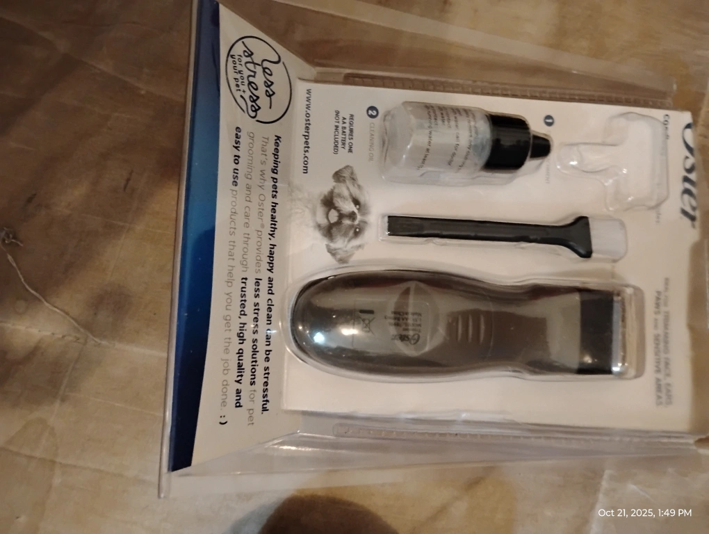 20Selling a set of pet grooming supplies! Included are: - Oster Calm Trims less stress trimmer: Cordless, lightweight, and compact design for face, paws, and sensitive areas. It uses a tug-free blade for yelp-free trims and battery operation enables freedom - A harness - An orange triangle toy - Two brushes