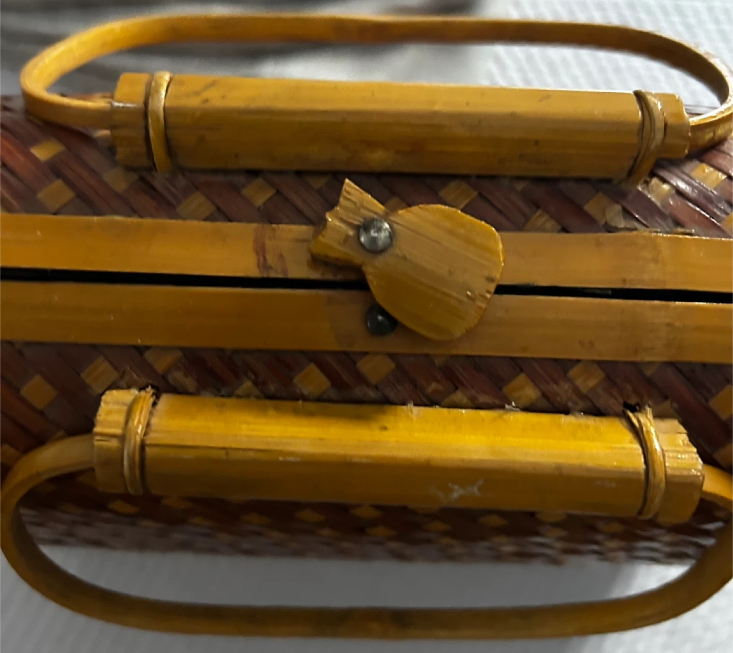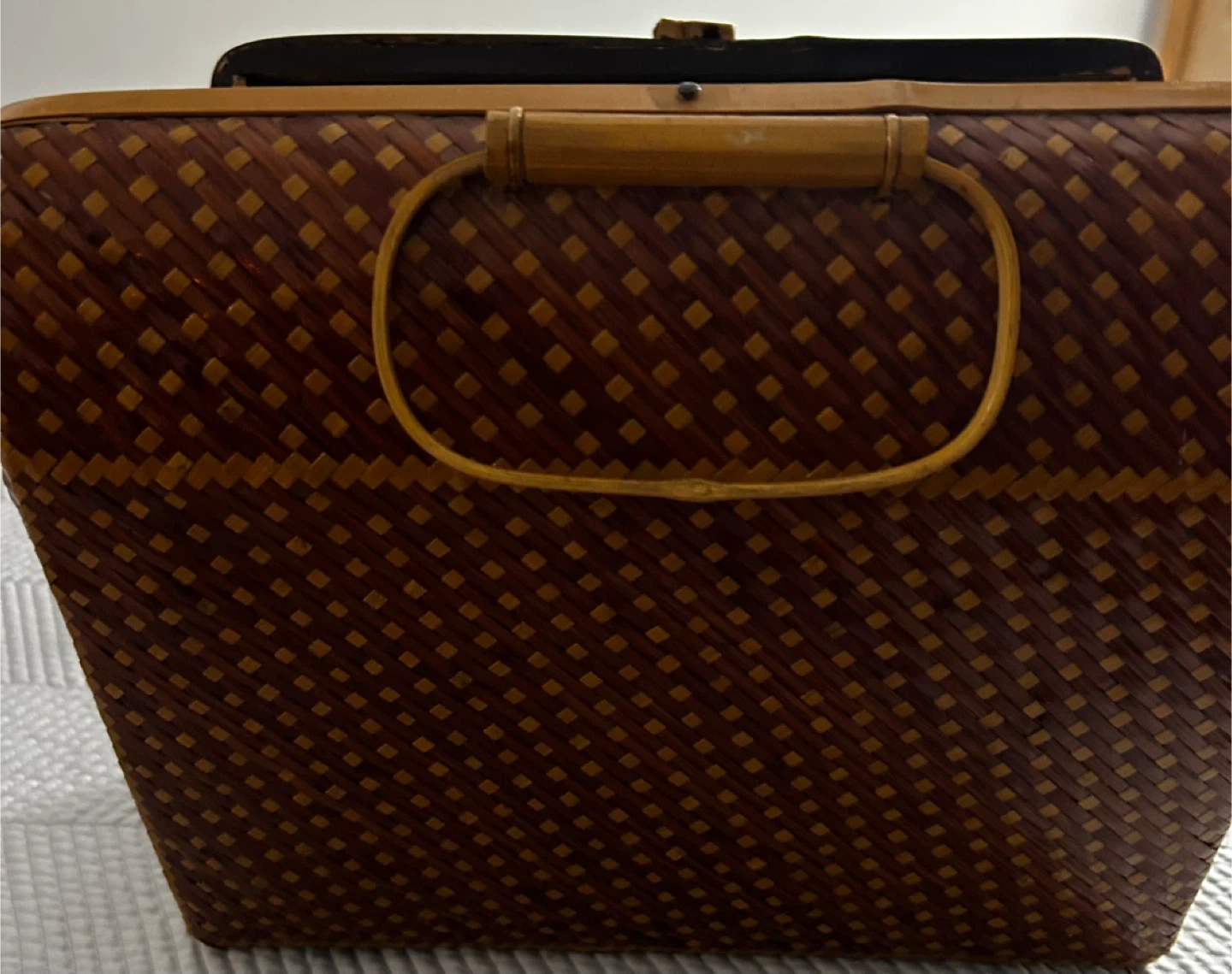18Selling a vintage woven bamboo handbag! It's in good condition and ready for your next outdoor adventure. The bag features a unique woven pattern and sturdy bamboo handles. Perfect for collecting or just adorning or completing an oufit Asking $10.00 - cash only pick Up in brooklyn