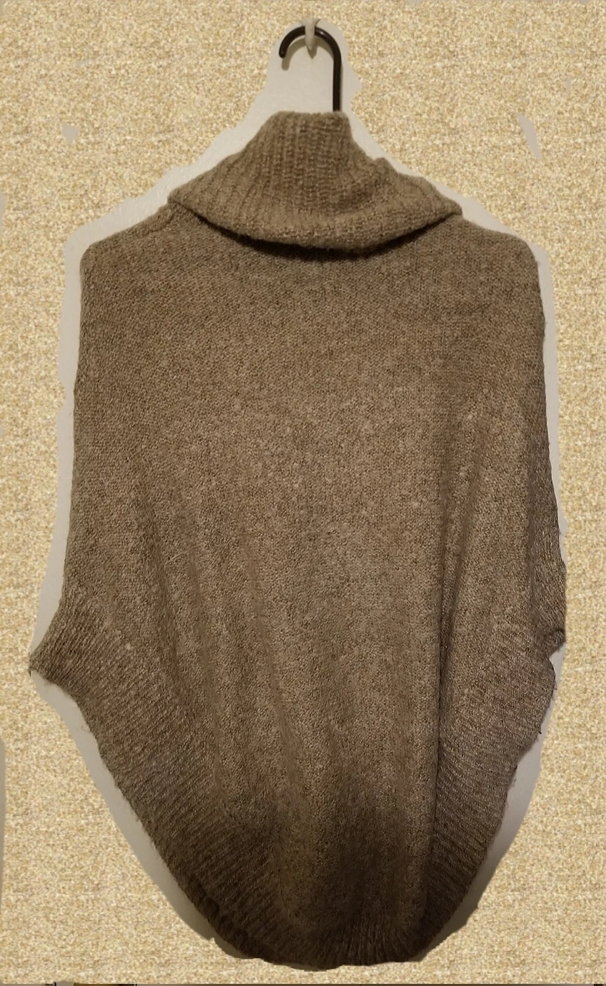 FREE NWOT Women's Brown Ribbed Knit Turtleneck Poncho