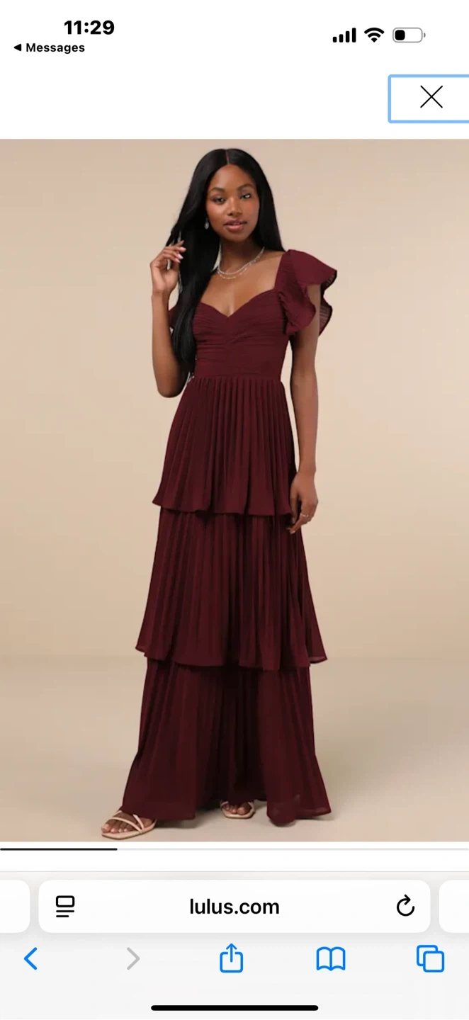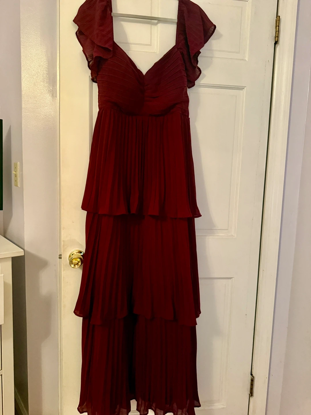 334Selling a beautiful Lulus burgundy tiered maxi dress! It's a size XL and in great condition. Perfect for a special occasion or a night out