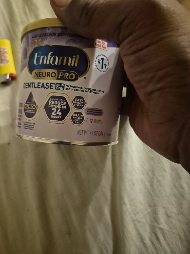 Selling two cans of Enfamil NeuroPro Gentlease infant formula. It's designed to help reduce crying in 24 hours and is easy to digest. The formula also has brain-building DHA. Net weight 7.2 oz (204 g)