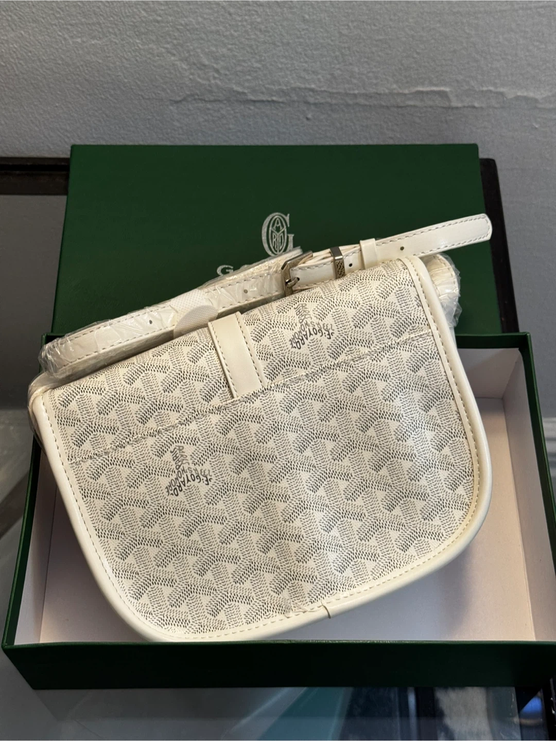 10Selling a Goyard Saddle Bag in white! It's in like-new condition and comes with its original box and dust bag. Perfect for adding a touch of luxury to any outfit!