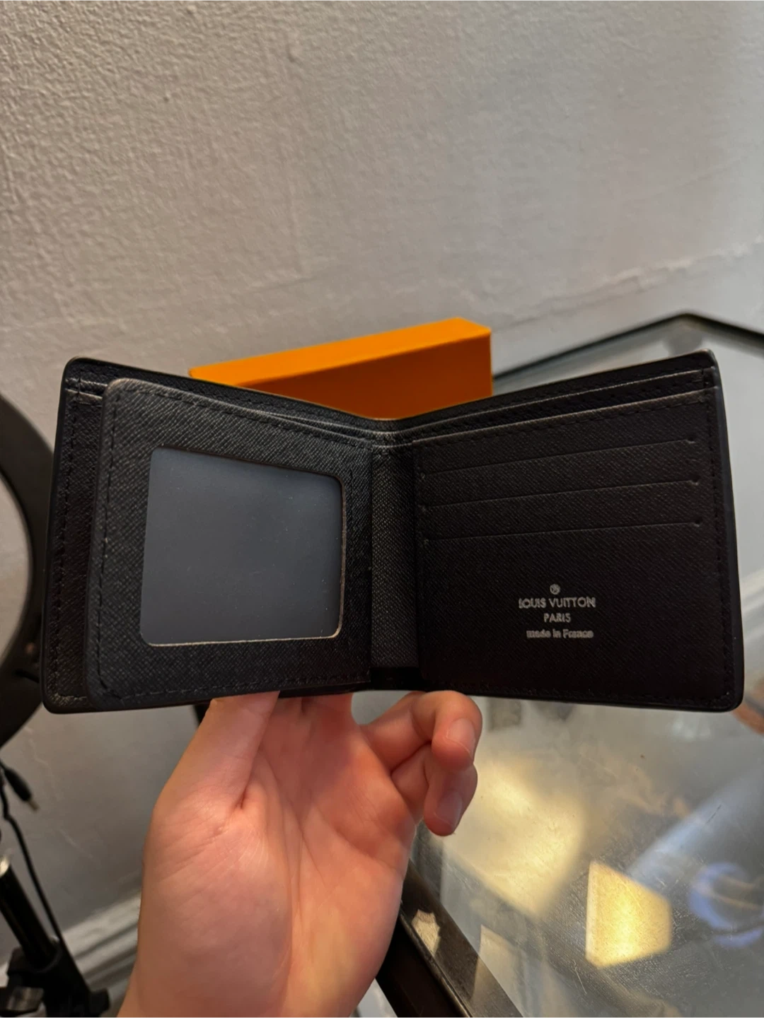 10Selling a Louis Vuitton Monogram Shadow wallet in great condition! It comes with its original box. The wallet features the iconic monogram pattern subtly embossed in black leather, giving it a stylish look