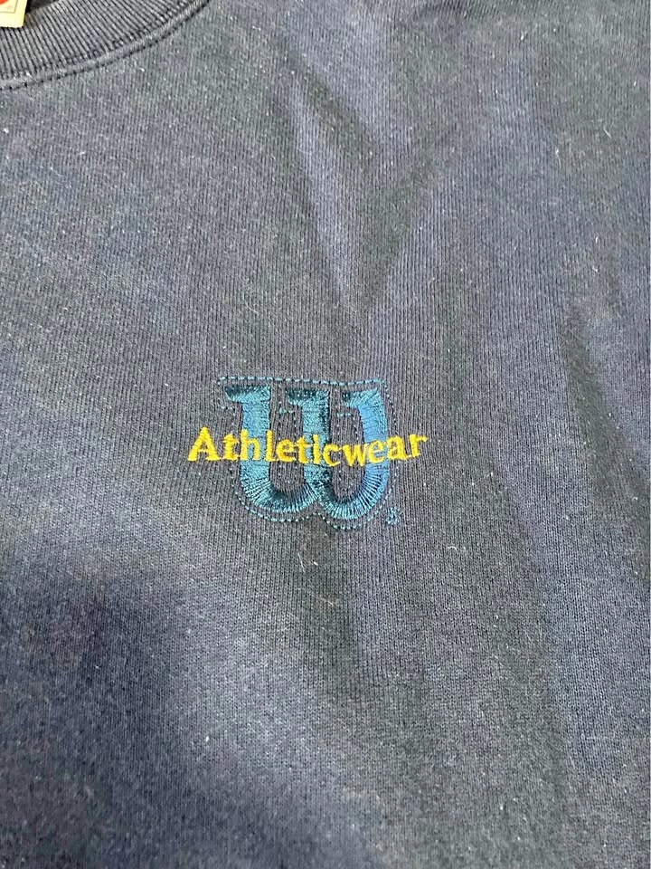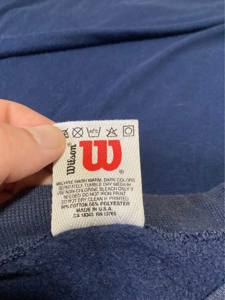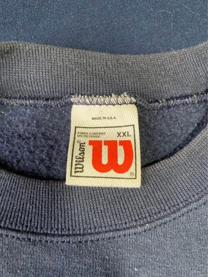 65Available for pickup in portage park- vintage Wilson athletics navy crew neck sweater size 2XL. Made in USA.