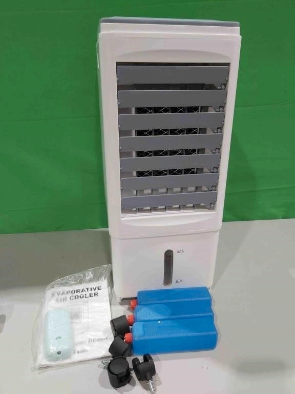65New portable air conditioner with remote, 3 speeds, evaporative air cooler, 1.6 Gal tank, swing, and 7H timer. BW-102Y. Package Dimensions: 60x30x27cm