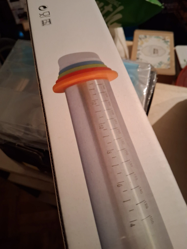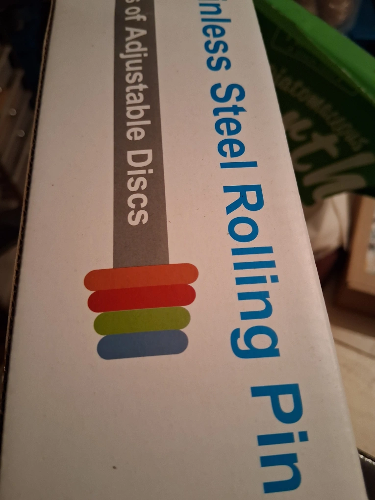 Selling a stainless steel rolling pin that comes with adjustable discs. It looks to be in great condition and ready for your baking needs! This rolling pin is perfect for achieving consistent dough thickness every time