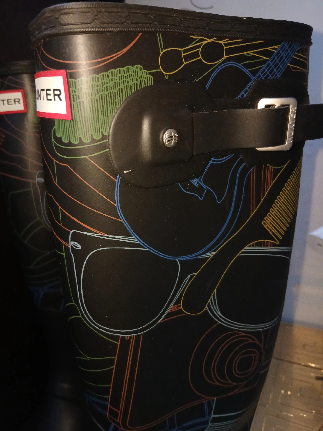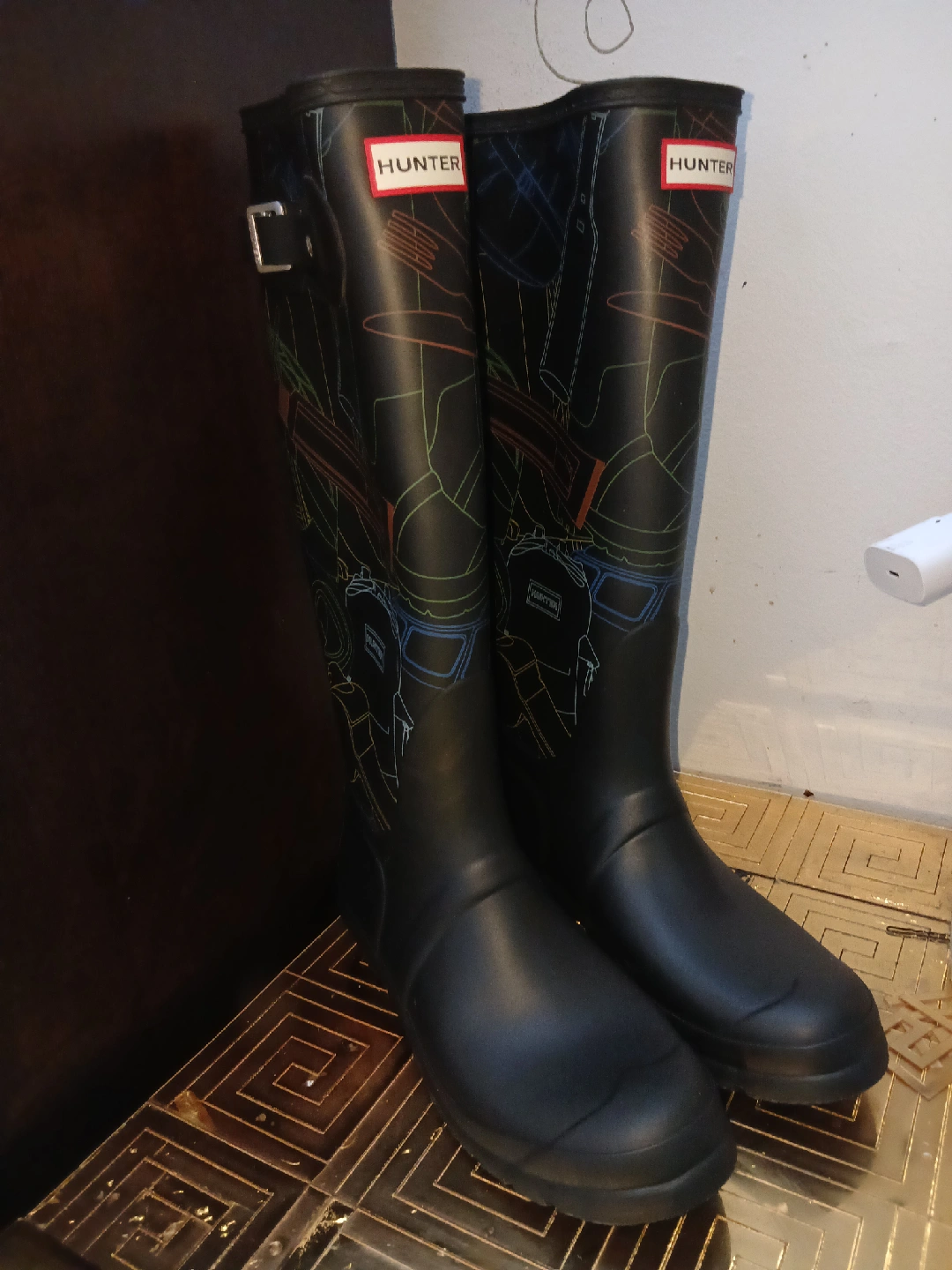 Selling a pair of Hunter rain boots in black with a fun design! The size is US 9 / EU 40/41. Great for rainy days!