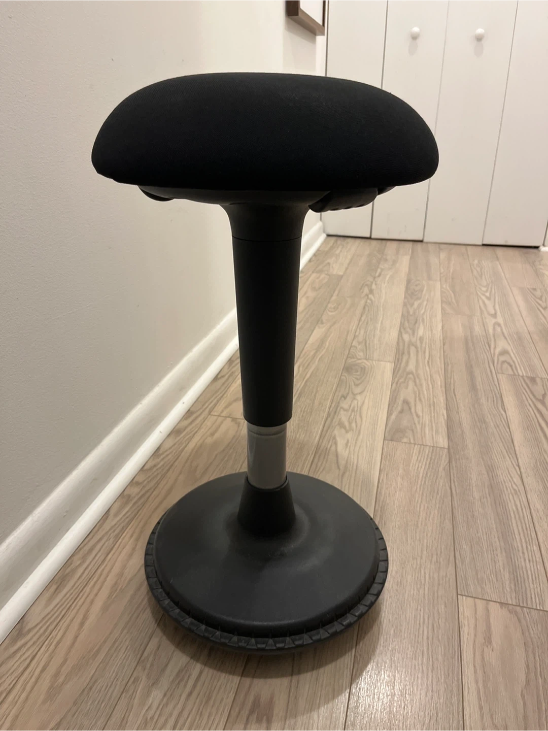 Selling a black wobble stool! It's in great condition and perfect for active sitting. This stool encourages movement and helps improve posture while you work or study