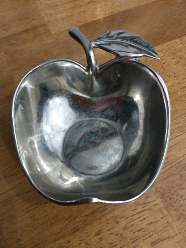 - Silver Apple Trinket Dish- heavy piece; moderate amount of discoloration inside dish and around rim outside of dish $5