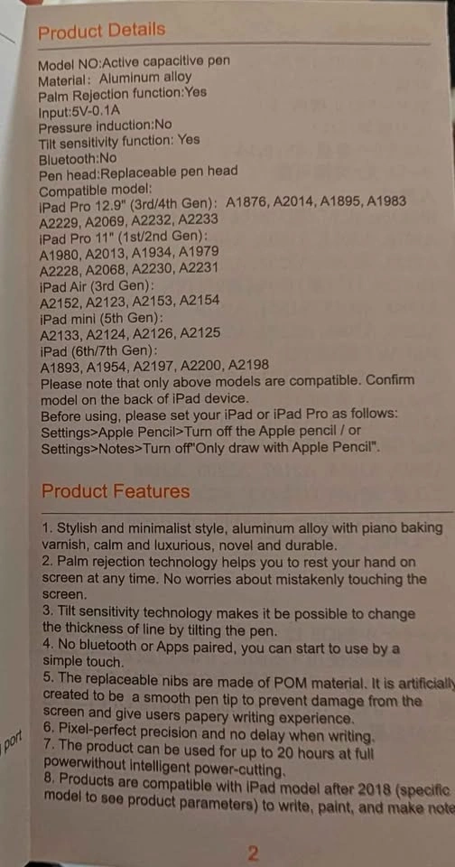 62Brand new stylus pen for i pad. Check pictures for compatibility details. Tilt sensitivity. Palm rejection. Magnetic function. Pick up or meet at feasible location