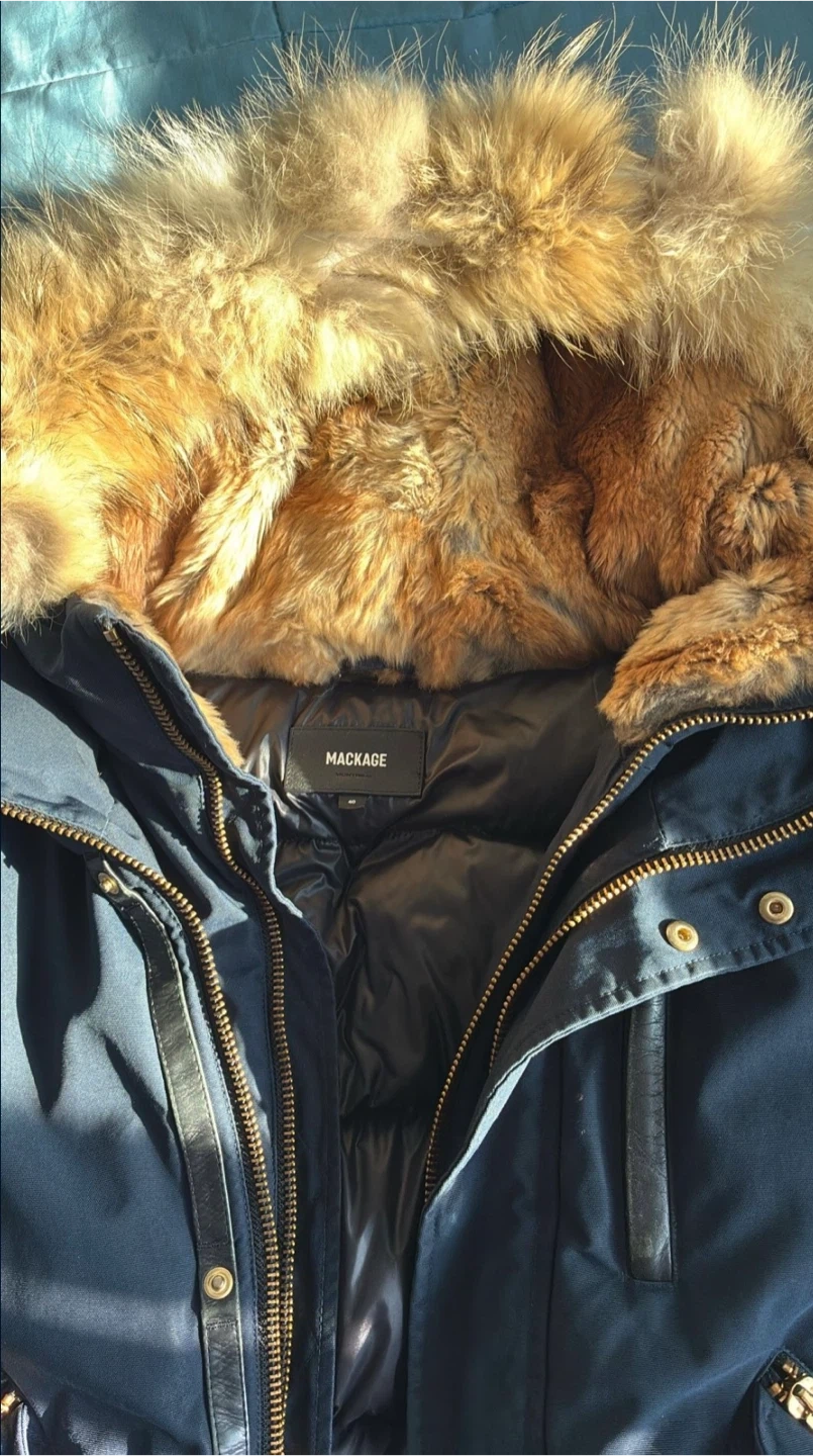 10Selling a stylish Mackage down winter jacket! It features a beautiful rabbit & coyote fur hood, perfect for staying warm and fashionable during the colder months. The jacket is in great condition and ready for a new owner.