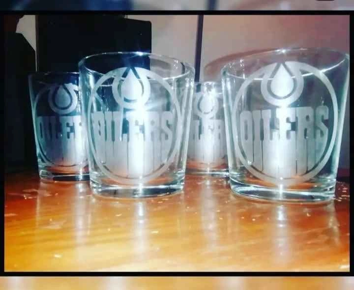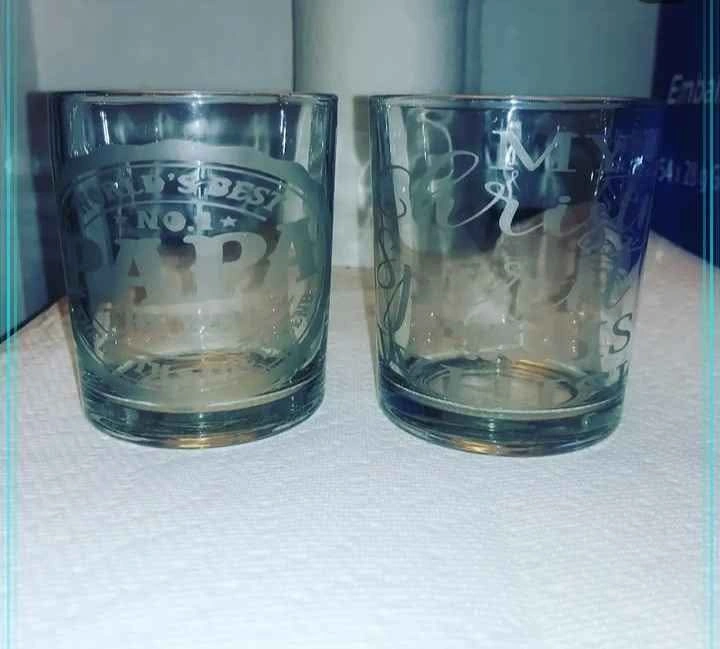 65Sets of 4 Whiskey glasses. Custom glass etched. Perfect for birthday gifts, Christmas gifts or wedding gifts. Images, logos, names and more can be etched into glasses. Feel free to message if you have any questions! shipping available