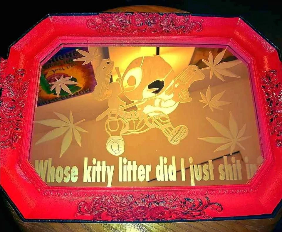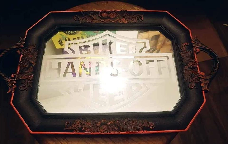 65Custom glass etched trays. Can be personalized with images, logos, quotes and more. Frame is customizable as well. $40 shipping available